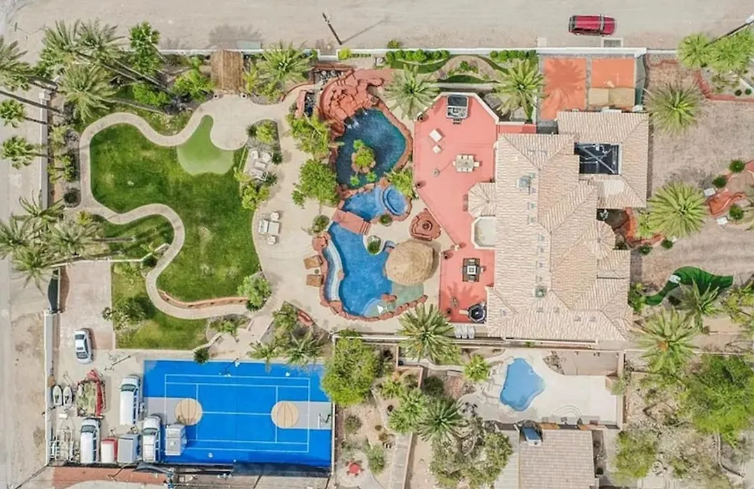 De 6-slaapkamer Villa With Pickleball - Bb Court - Pool Las Vegas ligt op maar 450 meter van de Las Vegas Nevada Tempel en nodigt gasten uit om te genieten van een bubbelbad. Gasten kunnen genieten van biljart in deze villa, gelegen op ongeveer 4 km van het Shadow Rock Park.